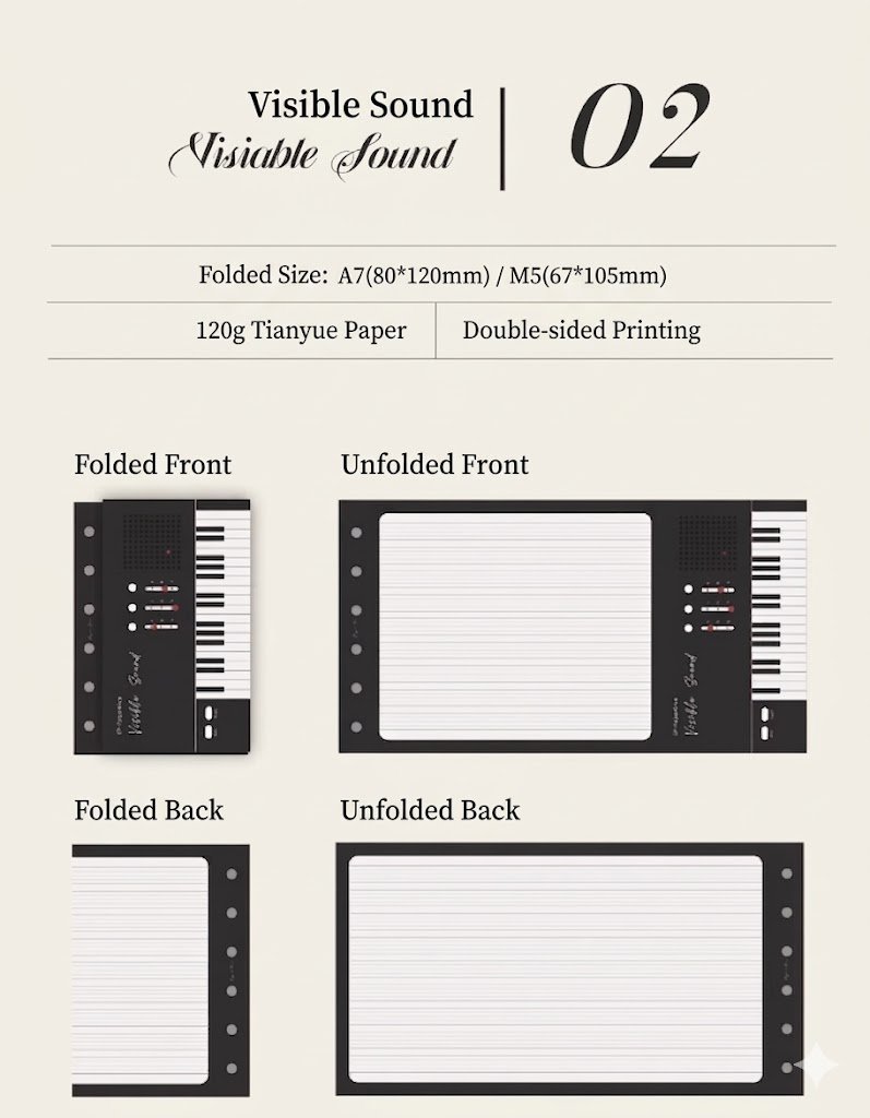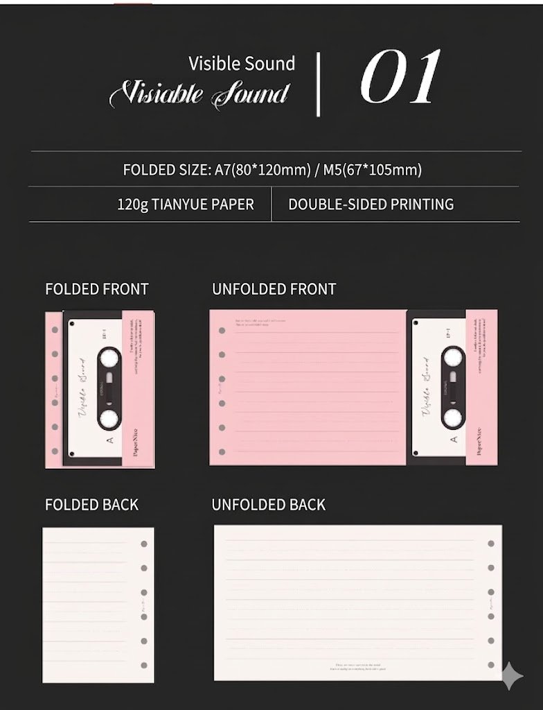 Home / Collection / PaperNice "See the Sound" Tri-Fold Refill Pages, A6/A7,15pcs